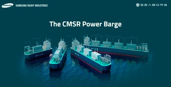 삼성중공업이 개발한 CMSR Power Barge는 전력생산 수요 규모에 맞춰 100MW급 CMSR을 2기에서 최대 8기까지 탑재할 수 있으며, 부유체 내에 스팀 터빈 발전기와 송배전 설비를 갖춘 `바다 위 원자력 발전소`임.